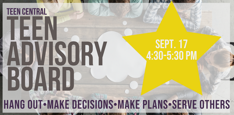 The Teen Advisory Board is a group of teens who meet once a month with the Teen Services Librarian. They advise the Teen Services Librarian on Library programs and materials for teenagers. This is a chance for teens to tell the Librarian what they want from their Library.