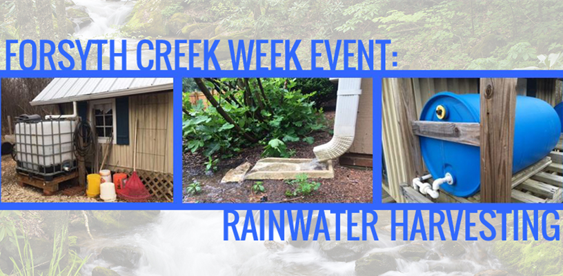 Forsyth Creek Week Event: Rainwater Harvesting is being held on Monday, March 25, from 12 p.m. - 2 p.m. at N.C. Cooperation Extension, Forsyth County Center, 1450 Fairchild Rd, Winston-Salem, NC 27105 in Auditorium C.