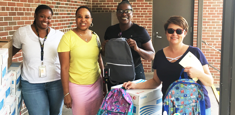 This past week, Hanesbrands Customer Service Managers Telesia Dubose and Paula Shumate provided and delivered 126 new book bags for children in the custody of the Forsyth County Department of Social Services.