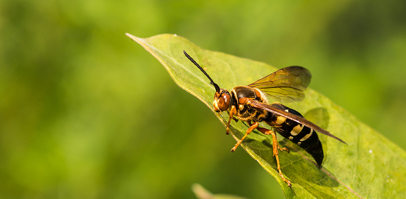 Over the last several weeks reports of extremely large “hornets” have been coming into our office. Don’t worry, North Carolina has yet to be invaded by “murder hornets”. Instead, we have entered the reproductive season for the cicada killer wasp, (Sphecius speciosus) a native species that can reach up to 2-inches in length! Males can appear quite aggressive in defending their territory, but are unable to sting. Females use their stingers for egg-laying and for capturing cicadas and will rarely sting for defense unless provoked. Solitary females lay eggs in self-constructed burrows in the soil, and then place paralyzed (but still living) cicadas alongside the eggs. The eggs soon soon hatch into larvae that feed on the helpless cicadas. Because large concentrations of cicadas can sometimes damage trees, the cicada killer wasp provides a beneficial role in the ecosystem by keeping cicada populations in check. Read more about these interesting insects in the NC State publication Cicada Killer Wasps in Turf.