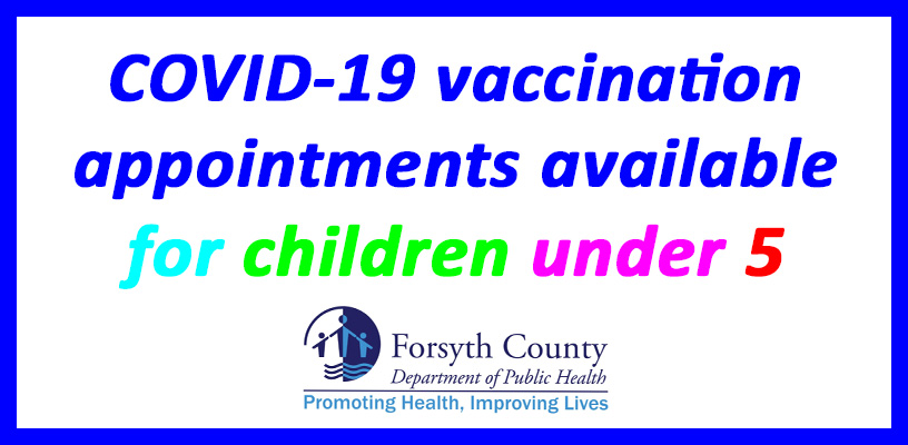 The Forsyth County Department of Public Health is now accepting COVID-19 vaccination appointments for children younger than 5 years-old that will start on Wednesday afternoon.