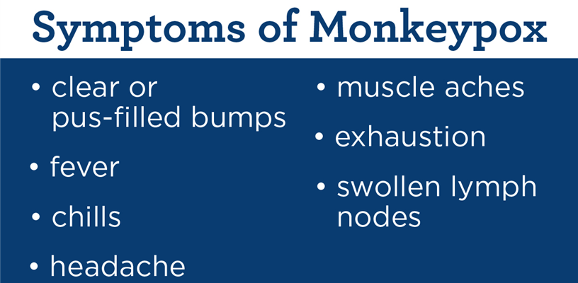 A monkeypox rash may initially appear similar to pimples, blisters, or raised bumps that appear on the face, hands or other parts of the body, and may be accompanied by fever and chills. People with a rash that looks like monkeypox should contact their healthcare provider. Close contacts to a known monkeypox case with no symptoms should contact their local health department.