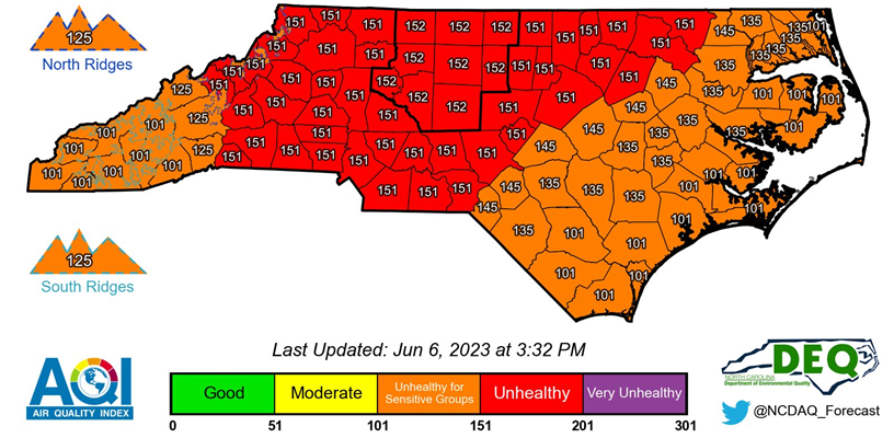 The smoke from Canadian wildfires continues to linger in the Triad and much of the eastern US. Anticipated levels of particle pollution may be unhealthy for anyone. Some members of the general population may experience health effects, and sensitive groups, including children, older adults, and people with heart and lung disease such as asthma, may experience more serious health effects.