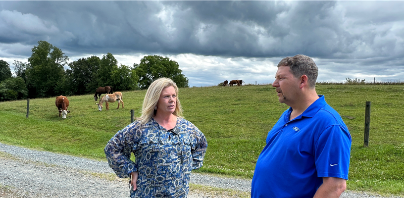 Neil and Karen Fishel are 3rd generation cattle farmers. Their farm driveway leads between two pastures of rolling green pasture scattered with contented Hereford beef cattle in Kernersville, NC. The Fishel family story actually began west of there in Winston-Salem where Neil’s grandfather began in the Hereford industry and Neil grew up showing cattle.