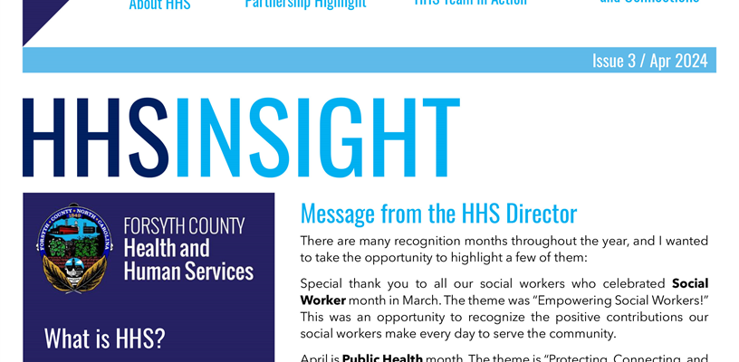 The latest issue of the HHS Insight newsletter is now available, providing information and updates on Forsyth County Health and Human Services.
