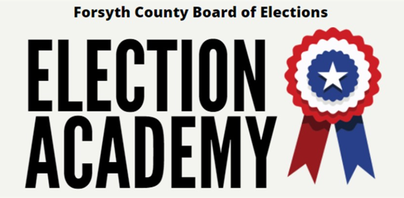 The Forsyth County Board of Elections will host the 2025 Election Academy starting on June 3, 2025, through June 24, 2025 (Tuesdays from 6:00-8:00 p.m.). Friday, May 16, 2025 is the deadline for applications to be submitted. The Election Academy is designed to give citizens a behind-the-scenes look at how elections are prepared and conducted in Forsyth County. In each class, participants will gain insight into the various components and requirements of the election process, such as voter registration, absentee voting, polling places, poll workers, and more.
